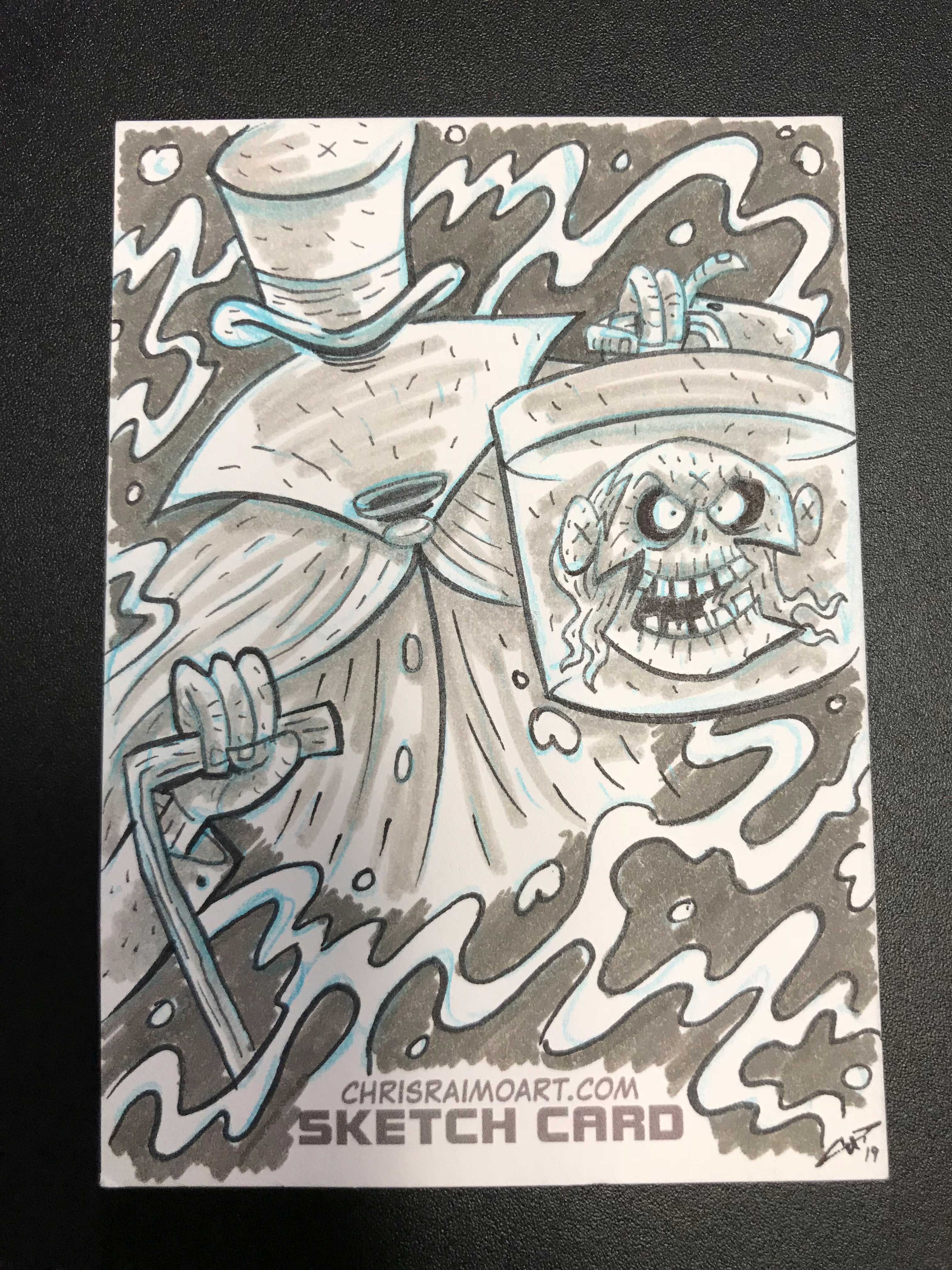 Ghost With A Hat Box Sketch Card